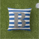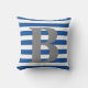 Royal Blue White Stripes Monogramm Initial Square Kissen