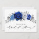 Elegantes königsblau weißes Silbermotiv werden Sie meine Trauzeugin Einladung mit elegantem Bouquet von Royal Blue, Navy, Silber, reine Weiß-Rose Blume Knospen und Salbei grün Eukalyptus Blätter. Bitte kontaktieren Sie mich für Hilfe bei der Anpassung oder wenn Sie ein anderes Produkt mit diesem Design benötigen.