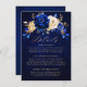 Elegante Hochzeitskarte mit royalblauem Goldmotiv mit elegantem Bouquet aus Royal Blue, Navy, Gold, Gelb Rose Blume Knospen und Eukalyptus-Blätter. Bitte kontaktieren Sie mich für Hilfe bei der Anpassung oder wenn Sie ein anderes Produkt mit diesem Design benötigen.