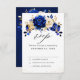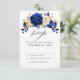 Royal Blue Yellow Gold Metallic Floral Wedding RSVP Karte