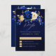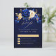 Royal Blue Yellow Metallic Floral Wedding RSV RSVP Karte