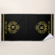 Das in Schwarz und Imitat Gold inspirierte Strandtuch ist mit einem eleganten Lorbeer-Kranz und einem Kronmotiv mit Streifen ausgestattet. Ihr personalisierter Monogramm-Brief füllt das Zentrum zusammen mit Ihrem Vor- oder Nachnamen. Verwenden Sie die einfache Vorlage, um Ihren Text hinzuzufügen. Passen Sie die Farbe des schwarzen Hintergrunds an / personalisieren Sie sie weiter.