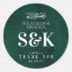 Royal Emerald Green Monogram Islamic Gastgeschenk Hochzeit Classic Round Stickers Ein herzliches Dankeschön für Ihre Anwesenheit bei unserer Hochzeit, hat einen eleganten smaragdgrünen Hintergrund. Es ist eine besondere arabische Botschaft got, "wa khalaqnakum azwaja" (was bedeutet "Und Wir haben Sie paarweise erstellt"), und unsere Namen und Monogramm sind stilvoll platziert werden kann in fett Typografie. Wir haben "Mit Liebe" und "Danke" hinzugefügt, weil wir es wirklich schätzen, dass Sie dort sind. Das Datum unserer Hochzeit ist auch subtil inbegriffen. Diese Aufkleber sind ideal, um Gastgeschenke Hochzeiten wie Umschläge oder Geschenke eine Touch Eleganz hinzuzufügen.