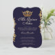 Royal Gold Leaf Crown Elegant Navy Quinceañera Einladung