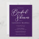 Diese königliche lila Brautdusche lädt zu einer wunderschönen, weißen Typografie auf einer soliden, violetten Karte für ein Abend-Party im Winter ein. Minimalistische Schrift und eine fette Farbe machen Ihre Brautveranstaltung zum Pop und heben sich von der Masse ab.