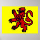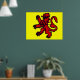 Roter Löwe auf gelbem Hintergrund grassiert.