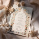Lassen Sie Ihre Gäste mit unserer verzauberten Viktorianischen Aviären Hochzeitseinladung in einen wunderschönen Garten eintauchen. Dieses bezaubernde Design besticht durch unzählige Blume in einer Pastellpalette aus Pfirsich, Blüten und Cremes, die mit Salbei und Olivenöl verwoben sind. Eine spielerische Touch wird ergänzt durch zauberhafte Schmetterlinge und Vögel in Himmelblau, sanft orangefarben und zarte Pinke, die sich zwischen den blumigen Festen zu trüben scheinen. Die zauberhafte Kronleuchte von Blumen und Fauna erinnert an das verzierte Eisenwerk eines Viktorianischen Wintergartens, das die Bühne für eine zauberhafte Hochzeitsfeier inmitten der Schönheit der Natur bietet.