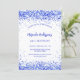 Für eine elegante 18. Geburtstagsfeier (oder jedes Alter). Ein schick weißer Hintergrund. Konfetti mit königsblauen Imitaten und Glitzern dekoriert. Personalisieren und fügen Sie einen Namen und Party-Details hinzu. Der Name wird mit einem handgeschriebenen Stilskript geschrieben