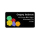 Diese Rücksendeadressen-Aufkleber zeigen farbenfrohe Abbildungen von Rollenspiel- oder Fantasy-Würfel-Set vor einem schwarzen Hintergrund mit Ihrem Namen und Ihrer Adresse in weißer Schrift.
