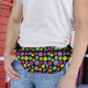 Dieses bunte gemusterte Fanny Pack ist perfekt für alle Fans von Rollenspielen und Fantasy-Brettspielen geeignet. Es zeigt verschiedene mehrseitige Würfel in grün, lila, orange, rot und gelb Set vor schwarzem Hintergrund.