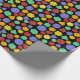 Dieses farbenfrohe gemusterte Packpapier eignet sich hervorragend zum Verpacken von Geschenken für Liebhaber von Rollenspielen und Fantasiespielen. Es zeigt verschiedene mehrseitige Würfel in grün, lila, orange, rot und gelb Set vor schwarzem Hintergrund.