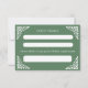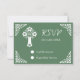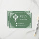 Eine Farn-grüne UAWG-Antwortkarte mit einem weißen Blumenkreuz und Eckchen-Schnörkeln. Teil der Floral Cross Christening Collection.