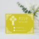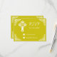 A yellow RSVP response card with a white floral cross and corner flourishes. Part of the Floral Cross Christening Collection.