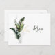 Diese Hochzeitspostkarte RSVP verfügt über ein tropisches, wasserfarbenes Blattwerk mit goldenen Blätter aus Imitat. Es ist ideal für einen Strand oder eine Hochzeit in Urlaubsort. >>>> Karo aus der gesamten Auflistung >>> https://www.zazzle.com/collections/tropical_foliage_green_collection-119021829937676776