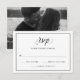 Diese elegante, moderne Hochzeitskarte bietet elegante schwarze Typografie auf weißem Hintergrund mit einem gerahmten schwarzen Rahmen und einem Foto auf der Rückseite.