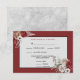 Die Einladung zur Hochzeit bietet bordeauxrote, rot-weiße Rosen. Der Hintergrund ist blassgrau und in Bordeaux gehalten.