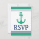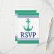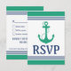 Hochzeit RSVP mit kelly grünem Herzenanker und marineblauen Streifen.