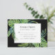 Dieses Design zeichnet sich durch tropisches, wasserfarbenes Blattwerk aus, das üppige, grüne Monstera und Blätter aus Palmen umgibt, die einen rechteckigen, weißen Rahmen auf schwarzem Hintergrund umgeben. Personalisieren Sie es mit Ihrer Wortwahl in schwarzem serifenem Schriftart. Die Rückseite ist schwarz.