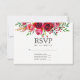 Aquarellfarbene Blütenhochzeit RSVP-Karten mit roten, lila, rosa und bordeauxfarbenen Rose und Torfbäumen.