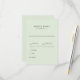 Einfache Sage Hochzeit RSVP Response Card. Abendessen Optionen.