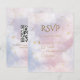 Rosa RSVP-Karte mit optionalem QR-Code | Watercolor Constellations & Stars Response Vervollständigen Sie Ihre Suite mit dieser rosa Himmelskarte mit Aquarellwolken, Sternbildern und glühenden Sternen. Ideal für Hochzeitsfeiern, romantische Hochzeiten oder moderne Hochzeiten, lasse diese vollständig anpassbare Vorlage UAWG, Termine und Essensauswahlen bearbeiten.