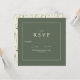 Vervollständigen Sie Ihre Boho Creme-Einladungen mit dieser eleganten, grünen RSVP-Karte. Mit seinem sanften, erdigen und minimalistischen Design harmoniert es perfekt mit der modernen Einfachheit und dem böhmischen Charme. Die Karte bietet eine klare, stilvolle Schrift, damit die Gäste mit Leichtigkeit reagieren können, und fügt Ihrer Hochzeitssuite eine Touch von natürlicher Schönheit hinzu. Ideal um einen angenehmen und einladenden Tag zu schaffen.