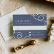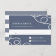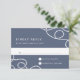 Die elegante RSVP-Karte für Hochzeiten an der Küste bietet Ihnen das gewünschte Reaktionsdatum und eine benutzerdefinierte Akzeptanz/Ablehnung auf einem blau-grauen Hintergrund, der an den Ecken mit Loops aus geflochtenem nautisches Seil betont wird. Die Karten werden zu breiten nautischen Streifen umgeschaltet.