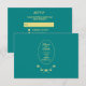 Fügen Sie eine elegante Touch zu Ihrem Hochzeitsladen mit dieser aquamarinen und goldenen Hochzeitskarte RSVP Antwortkarte. An der Vorderseite befindet sich ein Rose-Design mit "Save the Date", dem Namen des Ehepaares und dem Datum der Hochzeitsfeier. Auf der Rückseite finden Sie die Antwortdetails einschließlich der Frist für die UAWG und Auswahl der Speisen. Verwenden Sie die Vorlage zum Personalisieren.
