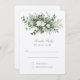 Erfahren Sie mehr über die elegante RSVP-Karte, die von einem blühend Design aus weißen Rosen und einem vollen Grün umgeben ist, von der leichtesten Pistazien bis zum reichhaltigsten Farngrün. Die Karte ist mit einem ausgefeilten Skript versehen, das Gäste einlädt, bis zu einem bestimmten Datum zu antworten, und bietet die Möglichkeit der Teilnahme. Das Design gleicht die Formalität einer traditionellen Antwortkarte mit der frischen, zeitgenössischen Anziehungskraft der botanischen Illustrationen aus und macht es zu einer wunderschönen Möglichkeit für die Gäste, ihre Teilnahme an Ihrem besonderen Tag zu bestätigen.