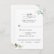 Elegante RSVP-Karte mit der Möglichkeit, Optionen für den Eintrag oder die Aufnahme von Diäten hinzuzufügen oder zu entfernen. Design mit exquisiten Aquarellecken Eukalyptus-Blätter und modernen, handgeschriebenen Kalligrafiedetails. Zurück mit zarten Aquarellfärbungen in grünen Farbtönen. Teil unserer Kollektion "Elegante Grüne Eukalyptus Hochzeit und Veranstaltungen" mit einer Vielzahl von Produkten zur Koordination. Die gesamte Sammlung finden Sie unter: https://www.zazzle.com/collections/elegant_watercolor_greenery_wedding_and_events-119677188951235183