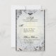 Extravagant gotische Fledermäuse Halloween-IRSVP-Karte einladen. Dieses elegante, extravagante und dennoch spukhafte halloween Hochzeitsfest rsvp hat alles, was Sie brauchen, um Ihr Thema Hochzeit zu feiern! Mit einem opaleszenten Hintergrund und einem faszinierenden und hübschen Kronleuchter im Hintergrund sind die Seiten mit extravaganten gotischen Schnörkeln in einem Metallton und Schwarz geschmückt, und überall fliegen skurrile Hasen. Diese Einladung ist großartig für diese Halloween- oder gotische Hochzeit. Der gesamte Text ist anpassbar!