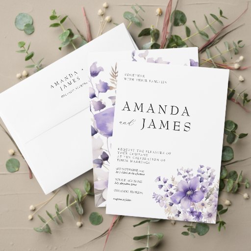 Mit unserer Lila Floral Watercolor Wedding RSVP Card sorgen wir für einen reibungslosen Ablauf Ihrer Hochzeit. Diese RSVP-Karte mit eleganten, lila Aquarellfloralen ergänzt jede Gartenhochzeit, jede rustikale Hochzeit oder jedes elegante Thema. Das zarte Blumendesign sorgt für eine romantische Touch, während der hochwertige Cardstock ein erstklassiges Aussehen garantiert. Passen Sie die Karte an, um Antworten, Speisen oder andere wichtige Details anzufordern. Die Lila Floral Watercolor Wedding RSVP Card ist mit ihrem eleganten Stil und ihrer funktionalen Gestaltung die perfekte Ergänzung zu Ihrer Hochzeitsbriefmarke.