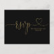 Ein elegantes goldenes Herzensskript auf einer schwarzen RSVP-Karte. Auf der Rückseite finden Sie Ihre Details und eine lustige Gesangsanfrage. Entwickelt von Thisisnotme©