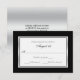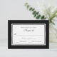 Diese einfache, elegante Schwarz-Weiß-Mehrzweck-Rsvp-Karte hat einen silbernen Look Rand um den weißen Textbereich auf der Vorderseite und einen silberfarbenen Rücken mit vollständig anpassbarem Text.