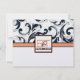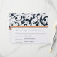 Schwarz-Weiß-Damast-Wirbel mit Korallenakzenten Hochzeit RSVP Reply Card Einladungen. Rokoko Barocke Blumenmuster Perfekt für die mittelalterliche Renaissance, Art Deco Art Nouveau, Roaring 20s Gatsby, Hochzeiten Themes Orte