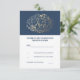 RSVP-Karten für Hochzeiten von Navy und Gold Flora RSVP Karte