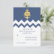 Navy Zickzack und Goldfolie Anker nautische Hochzeitskarte RSVP