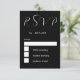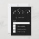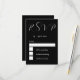 Minimalistisch elegante schwarz-weiße RSVP Karten für Ihre Hochzeitsgäste. Diese Karten sind zum Zeitpunkt der Bestellung mit Ihren eigenen Daten personalisiert