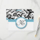 RSVP Karten Schwarz & Weiß Damask Pool Blue Trim