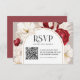 Eine moderne RSVP-Karte, die mit Eleganz und einem scannbaren QR-Code für schnelle und einfache Gastantworten konzipiert wurde. Genießen Sie rubinfarbene rote Rosen und weiche, weiße Blumen, die zu Ihrer Einladungssuite passen.