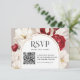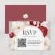 Eine moderne RSVP-Karte, die mit Eleganz und einem scannbaren QR-Code für schnelle und einfache Gastantworten konzipiert wurde. Genießen Sie rubinfarbene rote Rosen und weiche, weiße Blumen, die zu Ihrer Einladungssuite passen.
