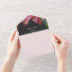 Dunkelrosa Botanisches Blumendesign und dunkelgraue geometrische Designs mit weißem Text. Entfernen Sie die uAwg mit qr-Code. Die Rückseite ist mit Rücksendeadresse versehen. Im Außenbereich befindet sich die Empfängeradresse.