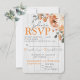 Vertikal abgerundete Corner Watercolor Floral & Wood Wedding RSVP Enclosure Card for Postal Mail UAWG Responses Elegante Aquarellfarben Blume & Foliage in neutralen und erdigen Farben auf einem grauen Holz treffen sich zu einem atemberaubenden, modernen und eleganten Spätsommer / Hochzeit im Herbst Thema. Doppelseitiger Druck. Orange, Terrakotta, Salbei, Creme, Pfirsich & Grüntöne mit einem schicken rustikalen boho inspiriert Design auf hellen Holz.