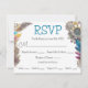 Hübsches Steampunk Thema Hochzeit RSVP. Hübsche Metallgewerke, türkisfarbene Federn und Blume, die in einem Metallgestänge und Schmuckstück versteckt sind.