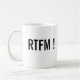 Becher klassisch Logo „RTFM“ Mao + Einschreibung „RTFM!“ am Rücken.