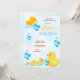 Lassen Sie sich mit dieser bezaubernden Rubber Duck Baby Shower-Einladung verwöhnen! Mit einer niedlichen Gummiente, zartem Wasser und fröhlichen Farbtönen ist diese Einladung perfekt für eine Kinderdusche mit Spaß, Liebe und Spannung. Passen Sie die Details an, um sie einzigartig zu machen und laden Sie Ihre Gäste zu einem fröhlichen Fest ein, während Sie sich auf Ihre Kleine vorbereiten. Ideal für eine Gummidusche oder eine Babydusche zum Thema Bad, diese Einladung Set den Ton für ein lustiges und unvergessliches Ereignis.