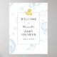 Welcome guests to your baby shower with this beautiful poster, featuring a blue frame surrounded by bubbles and a yellow rubber duck. Add the guest of honor's name, shower date and custom welcome text using the fields provided.