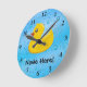 Rubber Duck Blue Bubbles Personalized Kids Runde Wanduhr