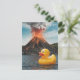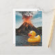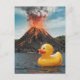 Die KI erzeugte Kunst einer surrealen Gummiente vor einem Vulkan, der derzeit mit Lavaströmen unterbricht