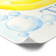 Ein niedliches gelbes Gummifotze, umgeben von Blasen auf einem Poster. Dort steht Bath Time auf dem Poster. Ideal für eine gummidige Babydusche! Für einen gerahmten Druck im Bad erhalten Sie eine kleinere Größe.